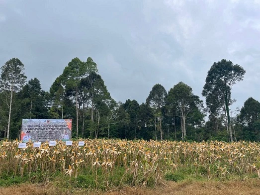 Di tengah hamparan tanaman jagung yang mulai menguning, Kepala Dinas Pertanian dan Ketahanan Pangan (DPKP) Kalimantan Selatan, Syamsir Rahman, memimpin langsung kegiatan panen bersama Kelompok Tani Bukit Merangkul.