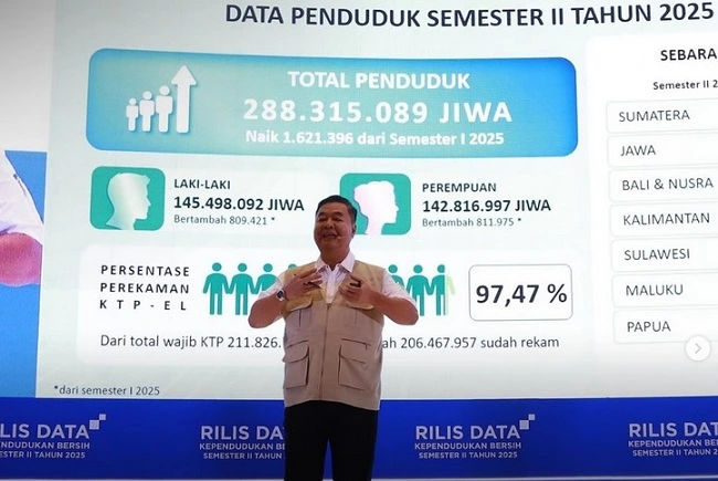 Direktur Jenderal Dukcapil Kemendagri, Teguh Setyabudi, mengungkapkan bahwa pertumbuhan penduduk nasional mengalami kenaikan sekitar 1,6 juta jiwa dibandingkan semester sebelumnya.